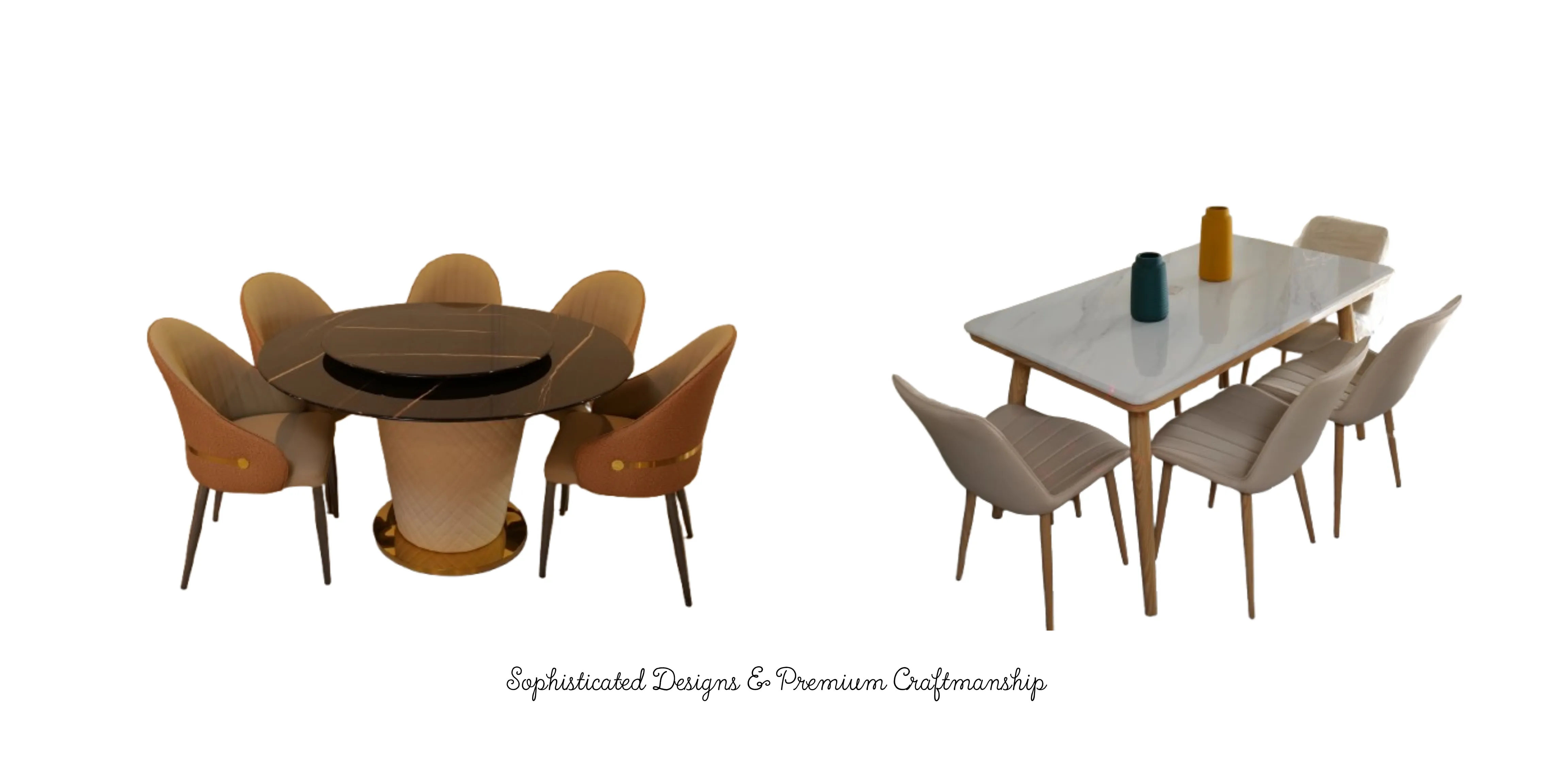 We use high-quality materials such as solid wood, engineered wood, metal, and premium upholstery fabrics to ensure durability and long-lasting comfort. Each product description includes specific material details.